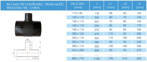 Ba chạc 90 độ chuyển bậc Trung Quốc là phụ kiện dùng để tách nhánh đường nước từ đường ống nước chính HDPE, trong đó nhánh tách ra có kích thước nhỏ hơn nhánh chính. Phụ kiện ba chạc 90 độ chuyển bậc Trung Quốc được làm từ nhựa PE, sản xuất trên dây chuyền hiện đại có chất lượng ưu việt. Với cấu trúc rất linh hoạt, tính năng đàn hồi tốt, ba chạc 90 độ chuyển bậc có thể được sử dụng trong mọi địa hình khác nhau.